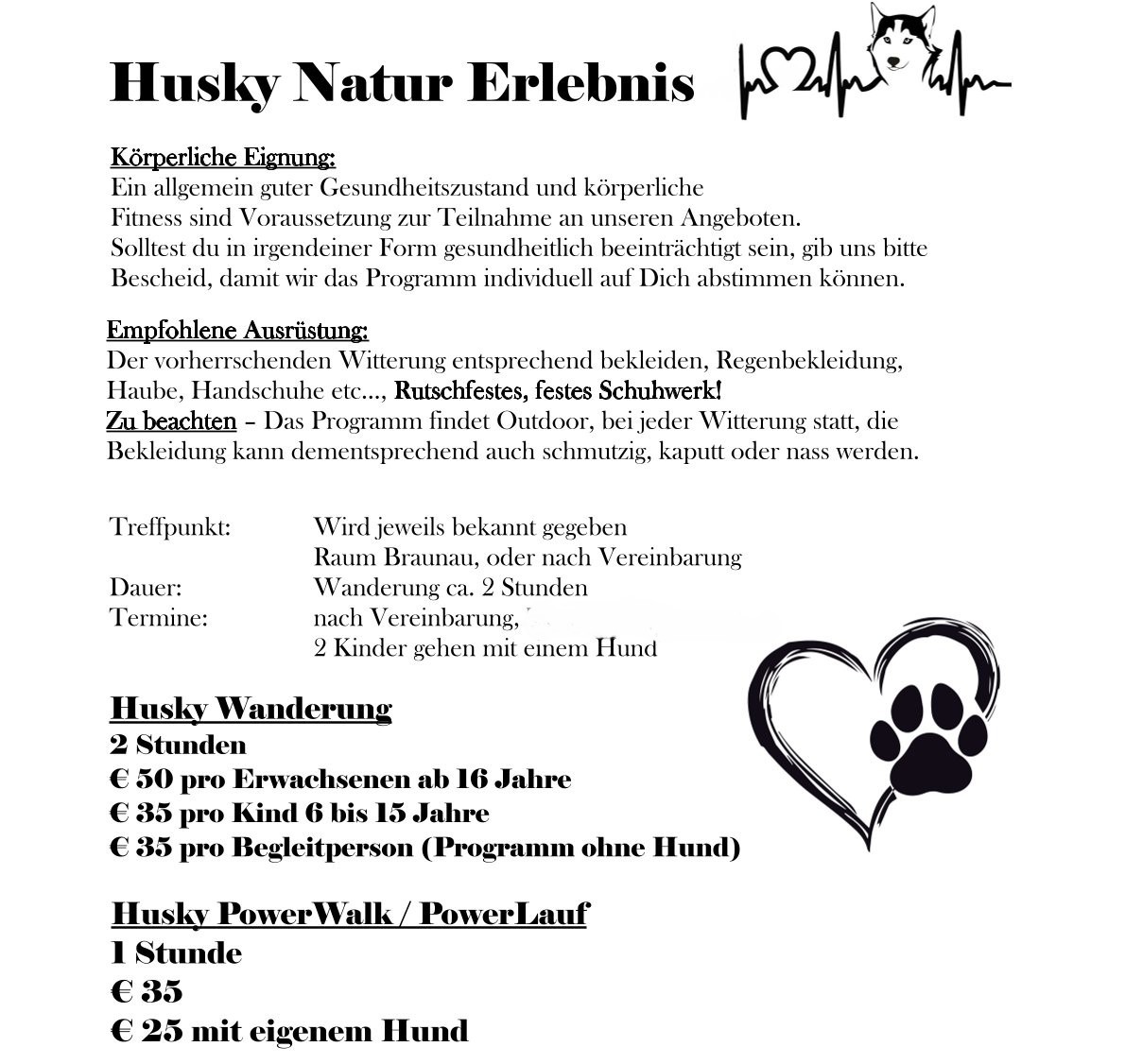 Die Teilnehmer/innen unserer Programme verpflichten sich, die AGB´s von Husky Natur Erlebnis, Sandra Böhm, zu lesen und akzeptieren diese durch die Teilnahme an einem Angebot.